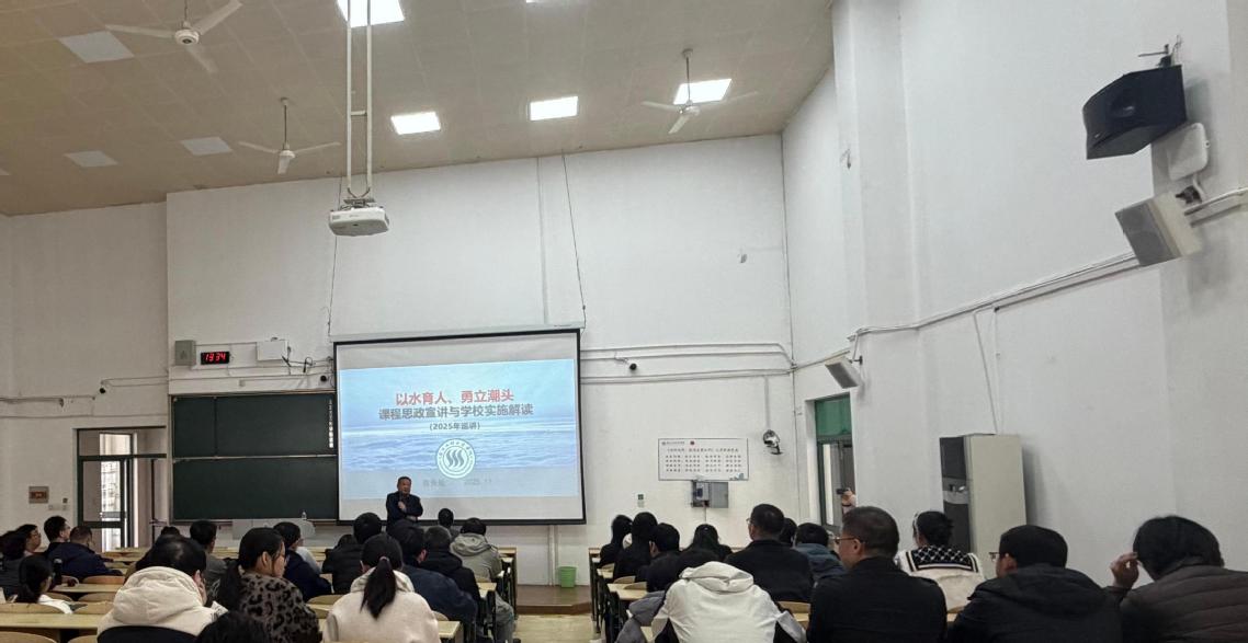 万军处长以“以水育人、勇立潮头”为题作课程思政专题报告。他系统梳理了课程思政的缘起与发展,回顾了浙水院课程思政建设的探索历程,并结合学校下一阶段深化推进的计划,全面阐述了课程思政育人功能的重要性与建设方向。万处长强调,教师应牢固树立“厚德思政”“思政即育人”的教育理念,准确把握课程思政的实质内涵。他还深入解读了“水院课程思政十点共识”与“课程思政十法”,多维度解析如何将思政元素有机融入课堂教学,包括利用“互联网+教学”(AI+)等现代技术手段,在线上平台学习资源中渗透思政教育内容。